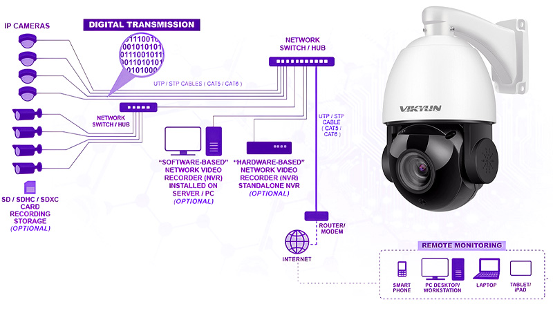 در سیستمهای نظارت تصویری، انواع رابط ارسال تصویر و صدا در دوربین مداربسته نقش اصلی را در کیفیت، پایداری و امنیت انتقال دادهها ایفا میکنند. این رابطها میتوانند به صورت آنالوگ (مانند کابل کواکسیال در دوربینهای AHD، HD-CVI و HD-TVI)، دیجیتال تحت شبکه (مانند کابل شبکه در دوربینهای IP)، فیبر نوری برای مسافتهای طولانی، و حتی بیسیم (وایرلس) برای نصبهای خاص باشند. علاوه بر انتقال تصویر، برای ارسال صدا نیز از رابطهایی مانند جکهای صدا، کابلهای اختصاصی یا انتقال صدا روی همان بستر شبکه استفاده میشود. انتخاب صحیح نوع رابط، با توجه به فاصله، کیفیت موردنیاز، بودجه و نوع پروژه، باعث بهبود عملکرد سیستم دوربین مداربسته و کاهش نویز و قطعی در تصویر و صدا میشود.