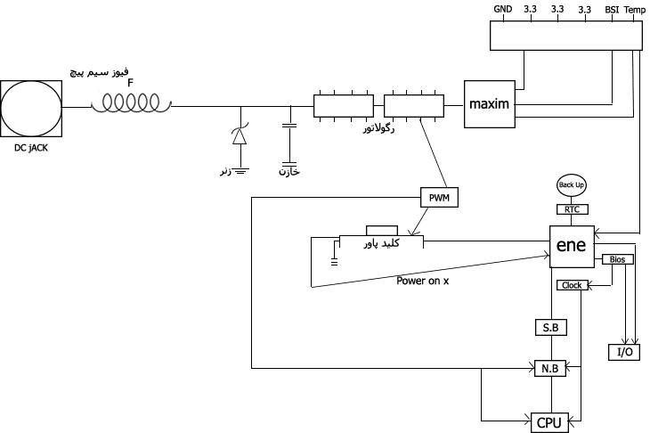 مدار داخل لپ تاپ که جریان برق ورودی از شارژر را به باتری منتقل کرده و ولتاژ و جریان را کنترل میکند.